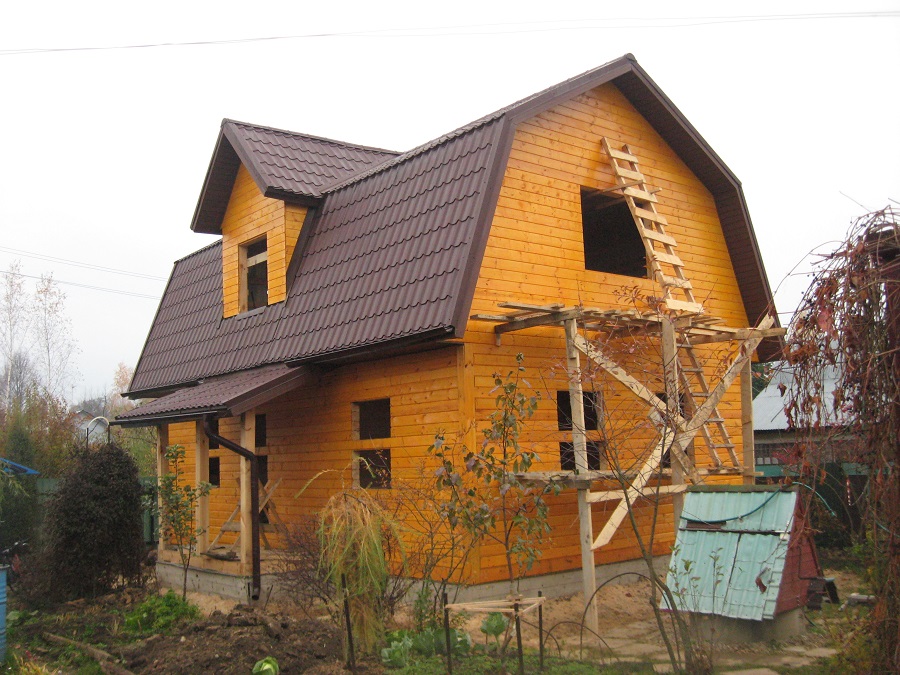 Монтаж ленточного фундамента, строительство сруба под усадку с кровлей из металлочерепицы, отделка дома "под ключ".